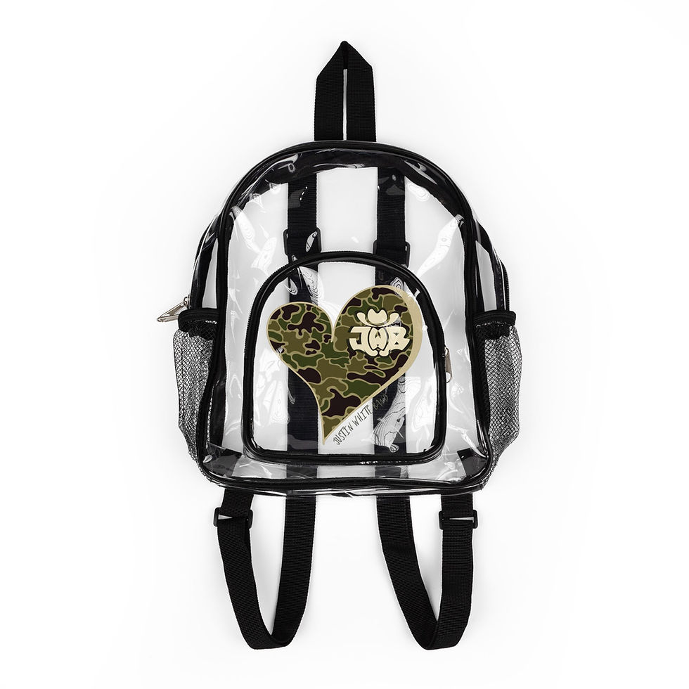 Camouflage Justin White Band Heart Clear Stadium Backpack